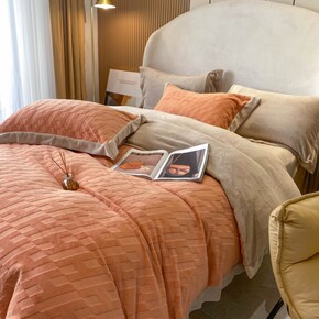 北欧风冬季加厚保暖牛奶绒四件套立体珊瑚绒被套床单柔...