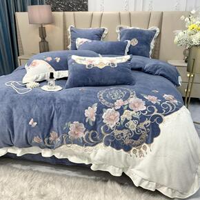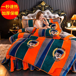 ins公主风加厚牛奶绒床上四件套冬季双面加绒法兰珊...