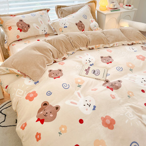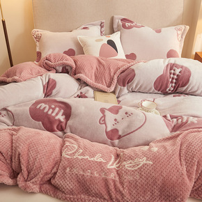 牛奶绒床上四件套冬季珊瑚绒保暖加厚法兰绒床单人被套...