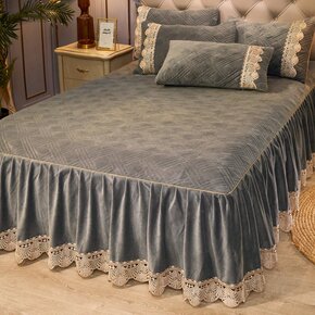 水晶绒圆床四件套床裙式圆形床笠珊瑚绒床罩加厚法莱绒...