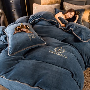 简约风加厚牛奶绒床上四件套冬季珊瑚绒双面绒被套床单...