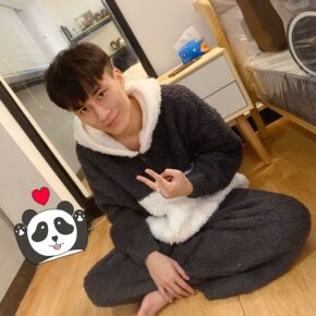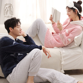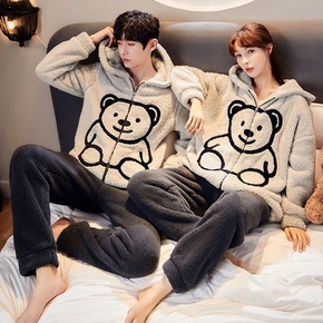 2021新款情侣珊瑚绒睡衣 可爱卡通连帽家居服女 ...