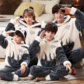 男女童睡衣秋冬法兰绒加厚亲子一家三口母女装中大童珊...
