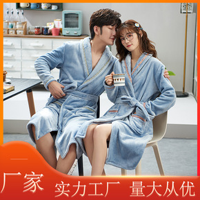 情侣睡袍批发 秋冬新款法兰绒睡袍女 学生加厚珊瑚绒...