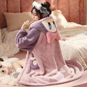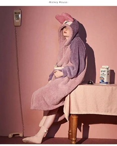 源头厂家批发网红可爱唐老鸭睡袍加长保暖珊瑚绒情侣家...