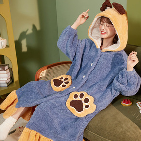 多款睡袍绒女法兰绒睡衣女加厚加绒珊瑚绒长款甜美可爱...