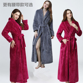 厂家直供奢华成人法兰绒睡袍 长袖 珊瑚绒男女睡衣加...