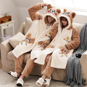 情侣睡衣秋冬珊瑚绒男女士加厚可爱长款睡袍法兰绒保暖...