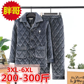 秋冬款加肥加大码法兰绒珊瑚绒睡衣男肥佬套装家居服胖...