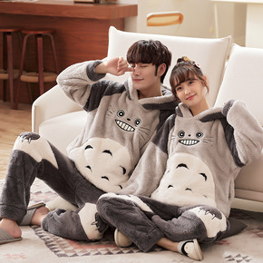 情侣睡衣女秋冬季加厚珊瑚绒可爱外穿拉链男士法兰毛绒...