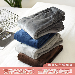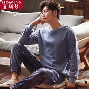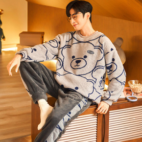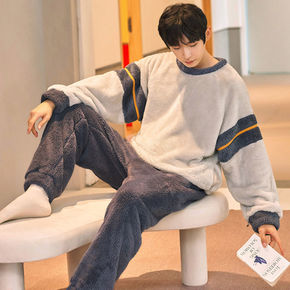 睡衣男士珊瑚绒冬季保暖加绒加厚可外穿法兰绒两件套装...