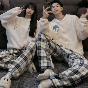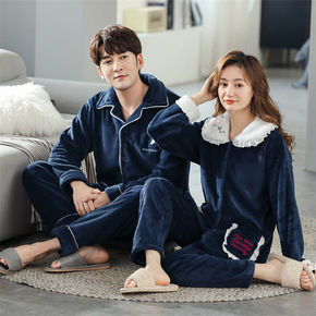 秋冬款珊瑚绒情侣睡衣女春秋冬季法兰绒男士加厚加绒家...