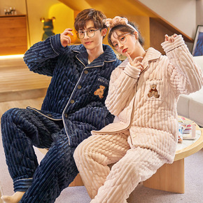 珊瑚绒情侣睡衣男女冬季加厚加绒可外穿暖暖衣套装家居...