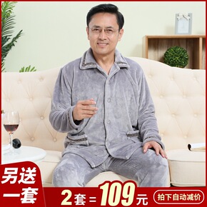 中老年珊瑚绒睡衣男秋冬款家居服老年人中年爸爸套装冬...