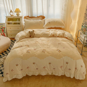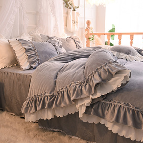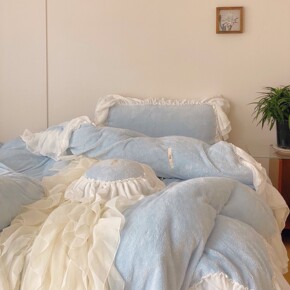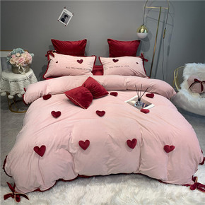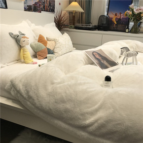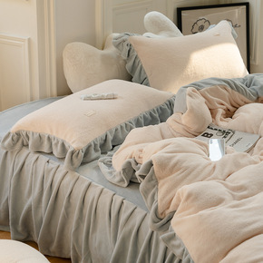 ins温柔奶油粉牛奶绒四件套冬季珊瑚绒公主风保暖三...