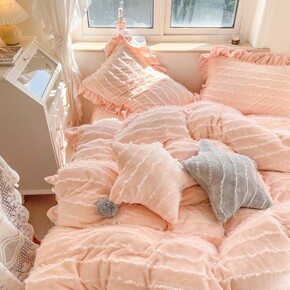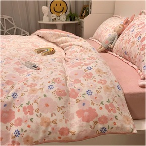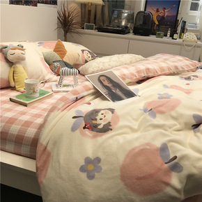 水蜜桃牛奶绒小清新少女心床上四件套珊瑚绒1.5米三...