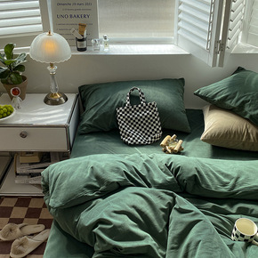 宝宝绒天鹅绒小清新少女心绿色绿色纯色床上四件套珊瑚...