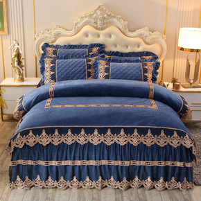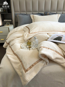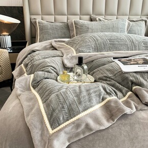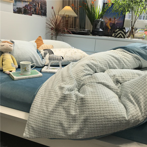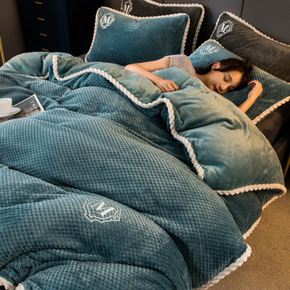 轻奢现代秋冬加厚雕花牛奶绒绒四件套保暖珊瑚绒床单简...