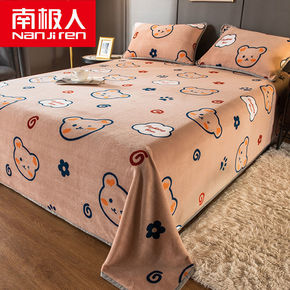 南极人牛奶绒床单单件冬季加厚珊瑚绒法兰绒加绒被单三...