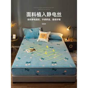 珊瑚绒床笠单件加厚防滑固定床单床罩冬季防尘罩席梦思...