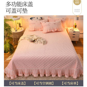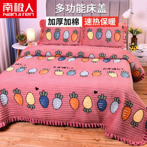水晶绒床盖冬季加厚法兰绒床单单件珊瑚绒夹棉双面盖毯...