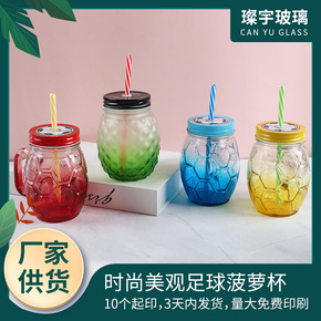 新款批发500ml足球菠萝杯珍珠奶茶杯果汁饮料杯夏...