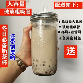 500ML一次性塑料杯带盖吸管奶茶饮料家庭珍珠奶茶...