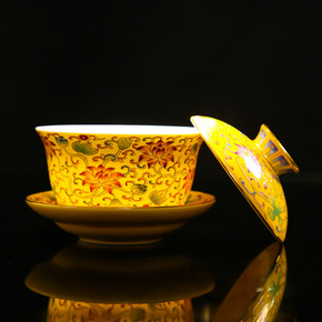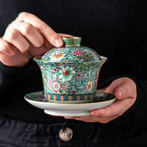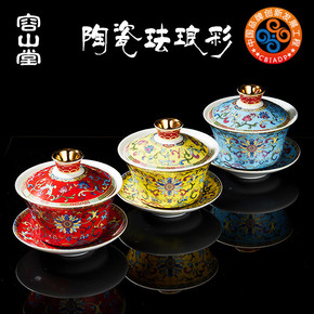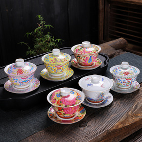 珐琅彩三才盖碗敬茶杯满彩趴花盖碗茶杯茶具套装批发零...
