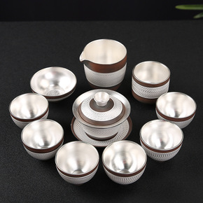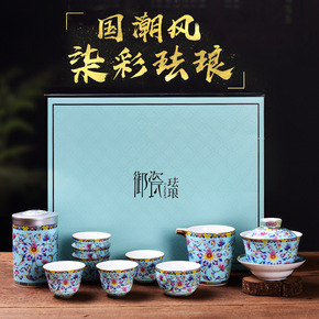 999银茶具套装珐琅彩鎏银茶具陶瓷套装纯银整套功夫...