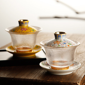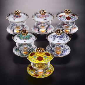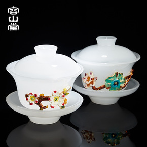 容山堂玉白瓷珐琅彩三才盖碗大号家用耐热玻璃单个泡茶...