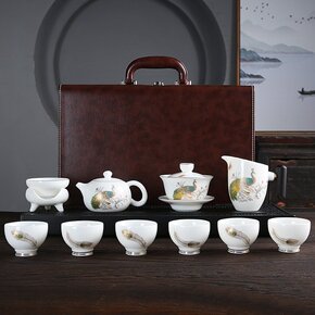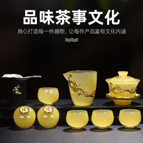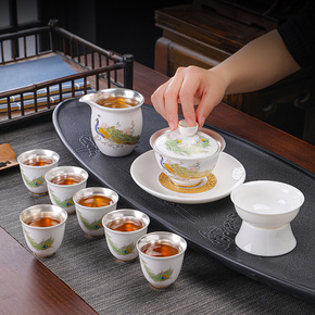 云鹤999鎏银功夫茶具套装珐琅彩整套套组家用盖碗茶...