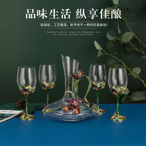 珐琅彩无铅水晶红酒杯醒酒器套装创意葡萄酒高脚杯子结...