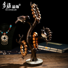 创意小鸟树枝首饰架复古饰品展示架佛珠手串摆件道具家...