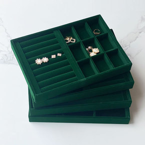 中号墨绿色绒布收纳盒饰品手饰戒指项链手链手镯收纳托...