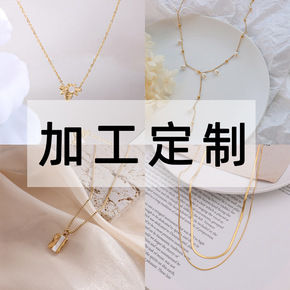 加工定制法式复古ins简约个性项链钛钢镀18k金桃...