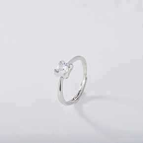 灰公主日韩简约风四叶草镶钻戒指 夏季新款925银花...