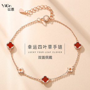 纯银925玛瑙五花四叶草手链女款森系韩版ins闺蜜...