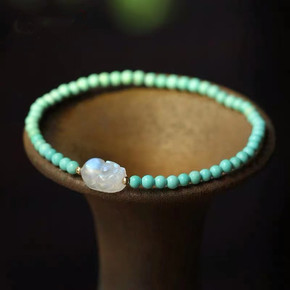高瓷绿松石手串 搭配冰透月光石貔貅小清新手链女款 ...
