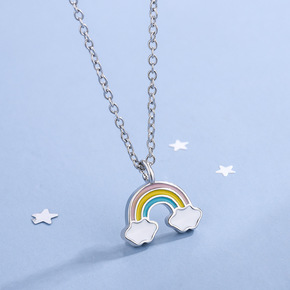 项链女韩版甜美可爱彩虹云朵项链滴胶短款锁骨链...