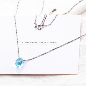 韩版日系甜美蓝色水滴形项链女士简约创意人造水晶琉璃...