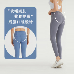 2020跨境新款网纱口袋瑜伽裤提臀裤四面弹运动健身...