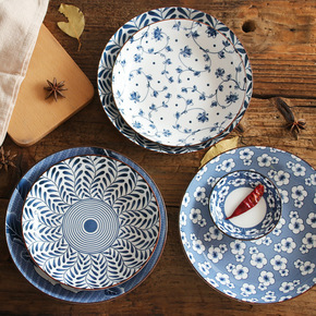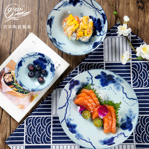 GW日本进口釉下彩日式餐具瓷器陶瓷家用日料深盘钵菜...