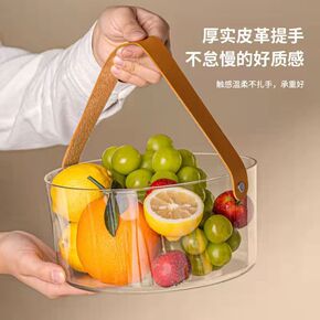 玻璃水果盘家用客厅快乐冰桶手提篮子零食干果透明果盘...
