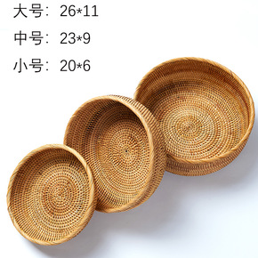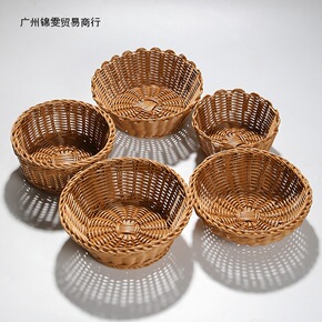 仿藤编桌面圆形收纳篮编织零食干果筐 小吃篮点心盘水...