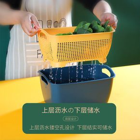 双层洗菜篮沥水盆网红水果盘厨房洗菜盆客厅塑料淘菜筐...