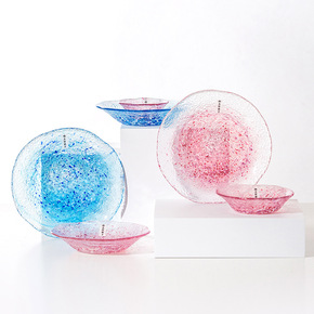 日本进口水晶玻璃日式简约碟子耐热手工创意可爱女生零...
