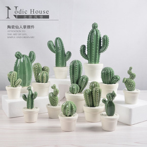 仿真陶瓷盆栽摆件 仿真多肉 仙人掌桌面花盆...