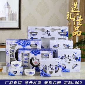 国色青花瓷碗筷陶瓷餐具套装礼品定制开业商务礼品节日...