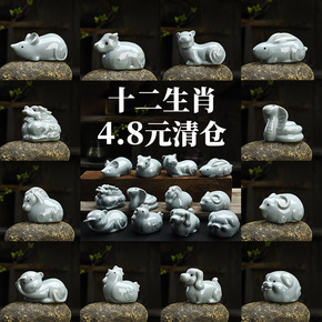 十二生肖哥窑茶宠整套摆件可养茶艺茶桌茶台个性可爱陶...