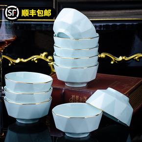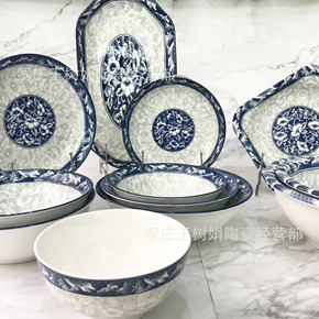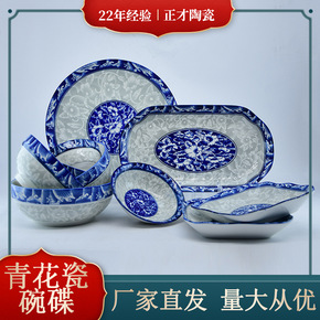 定制款中式青花瓷碗套装 陶瓷碗盘碟餐具 开业活动引...